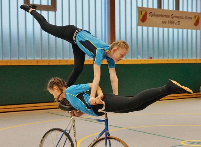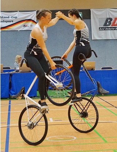 Mit einem guten Auftritt beim Internationalen Deutschland Cup am 17.09. in Osterholz-Scharmbeck beenden Mona Komnick und Paula Busse ihre diesjährige Saison. Sie starteten in der Disziplin 2er Kunstradsport Elite Frauen und bei einem Platz unter den ersten fünf wäre sogar die Qualifikation für die Deutsche Meisterschaft erreicht. Da sie von Platz sieben aus starteten war es zwar schwierig, aber nicht unmöglich, dieses zu erreichen.