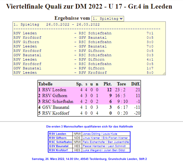 Am 26. März 2022 fand in Leeden das 1/4 Finale zur Deutschen Meisterschaft statt.
